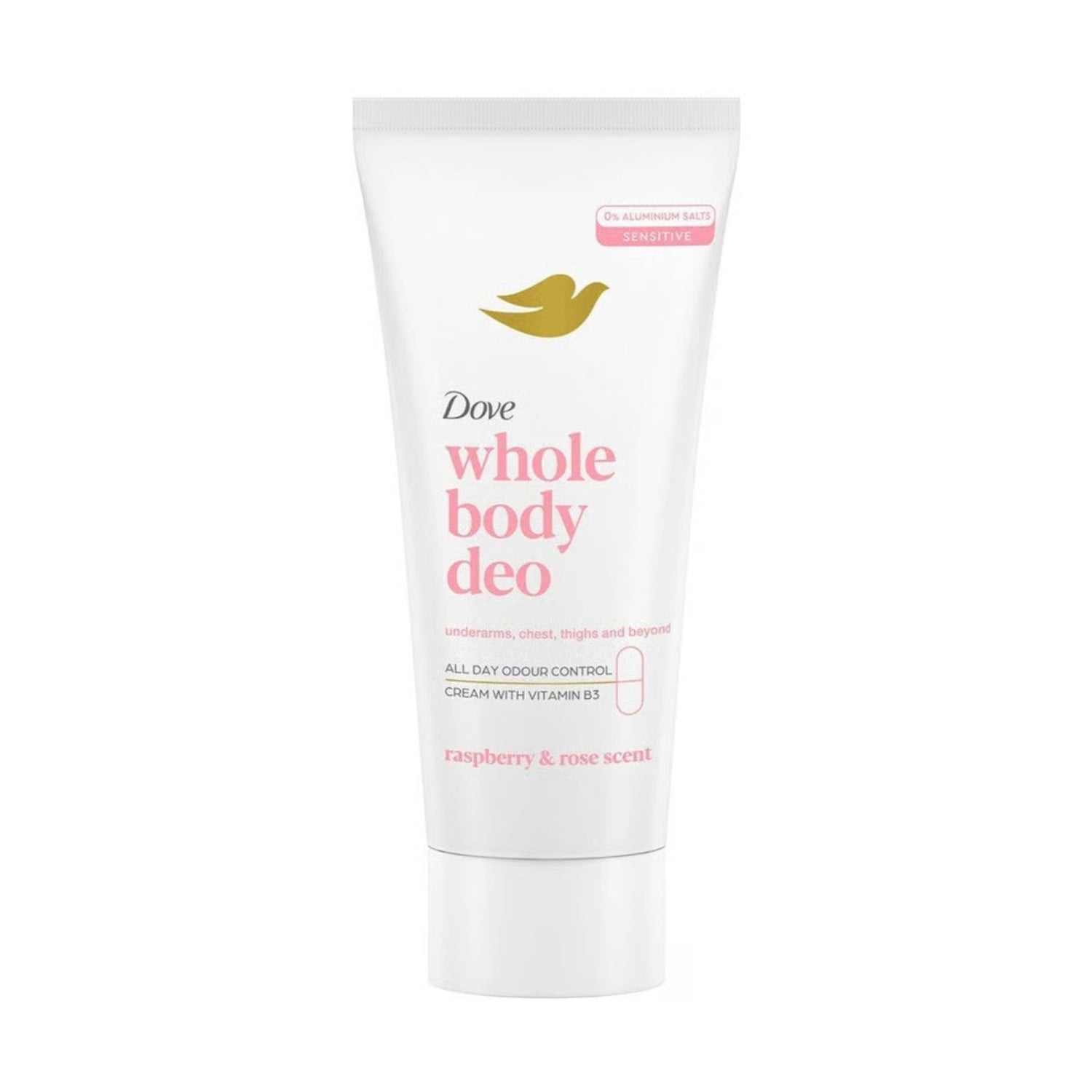 Our bodies sweat and smell from anywhere, so Dove created a whole-body deodorant that delivers long-lasting odor control with a gentle, sensitive-skin formula. This invisible cream goes on clear, balances skin pH, and helps stop odor before it starts—perfect for underarms, underboobs, thighs, feet, and intimate areas. Powered by 1.25% lactic acid and finished with a bright raspberry and soft rose scent, it keeps you feeling fresh and confident all day.