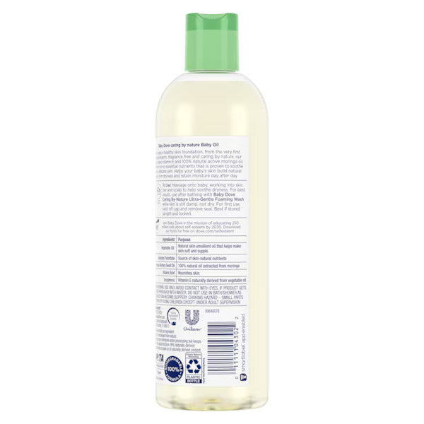 Gently nourish and protect your baby’s delicate skin with Baby Dove Caring By Nature Hypoallergenic Baby Oil. Made with vitamin E and 100% natural moringa oil, this lightweight oil helps soothe dryness while locking in moisture to keep skin soft and smooth. Thoughtfully formulated for sensitive skin, it’s a gentle, everyday option you can trust for your baby’s skincare routine.