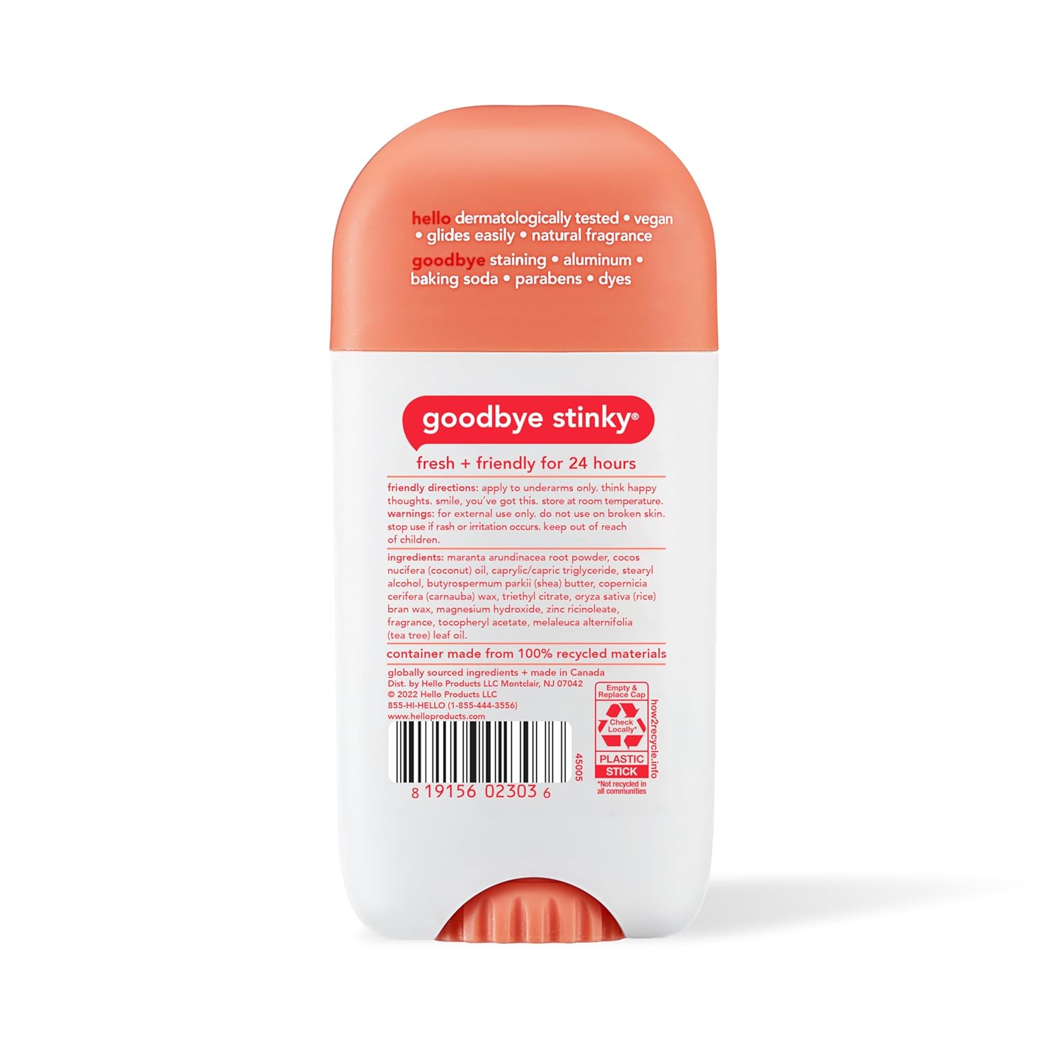 Hello Aluminum-Free Deodorant, Peach Sparkle, 2.6oz