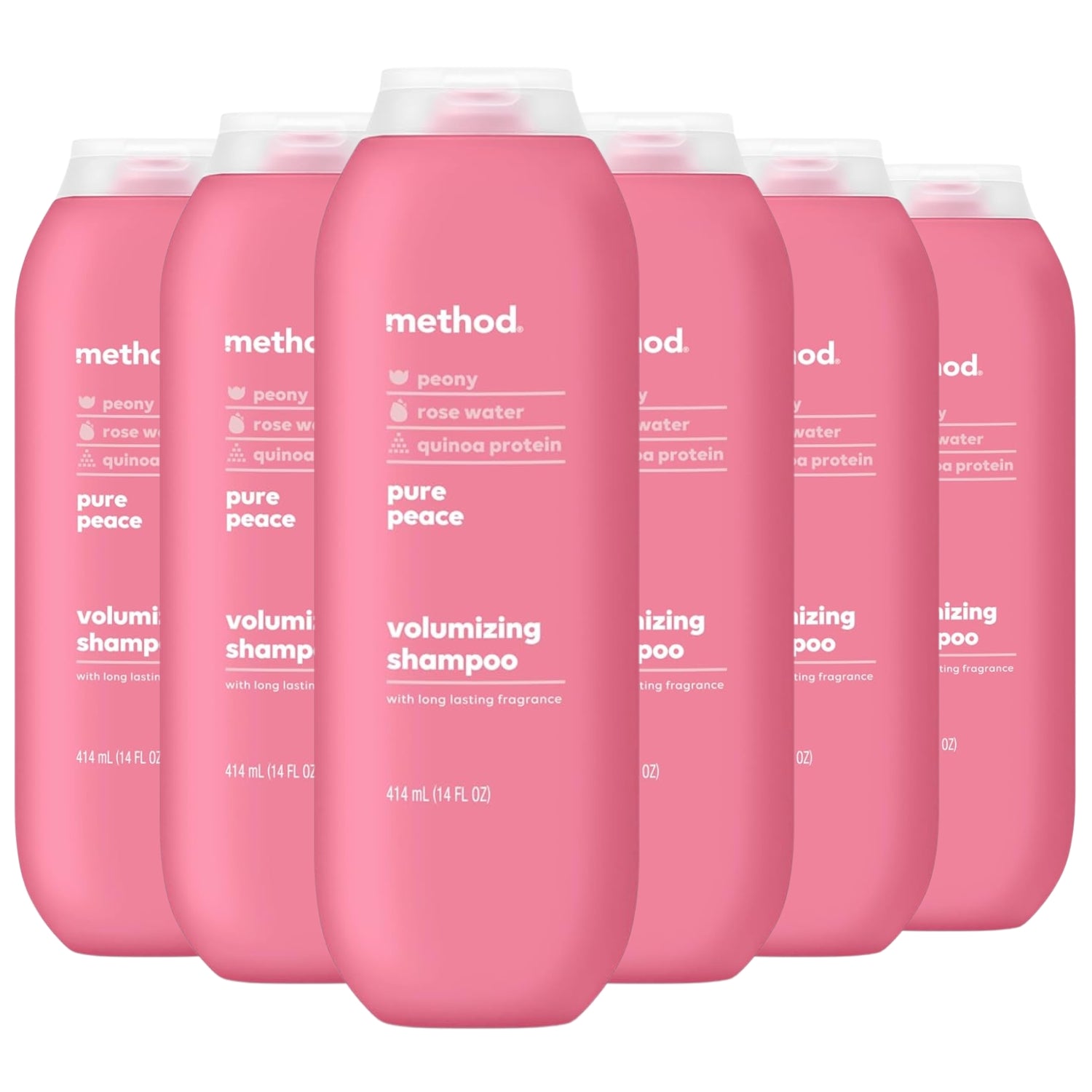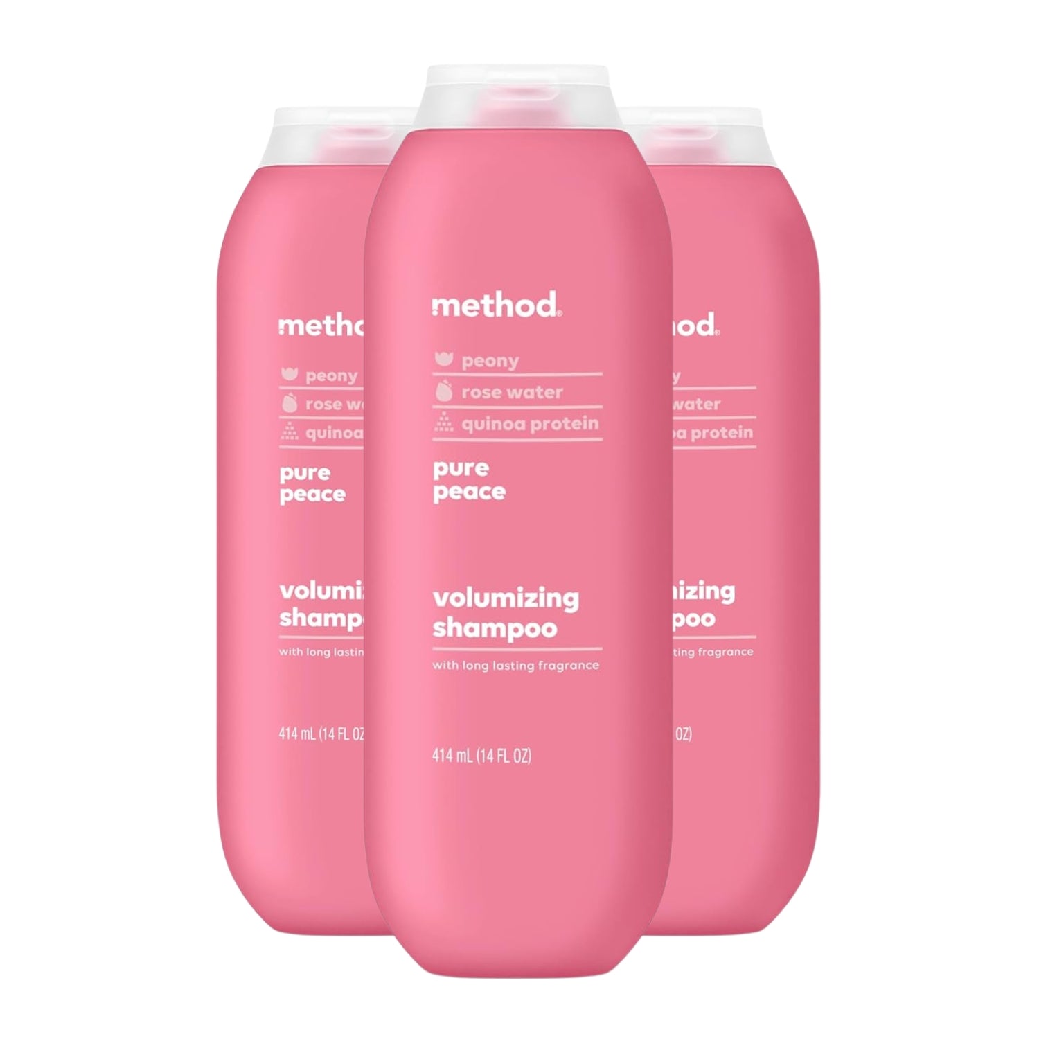 Lift flat, lifeless hair with Method Volumizing Shampoo in Pure Peace. This lightweight, sulfate-free formula gently cleanses while boosting volume for hair that looks fuller, thicker, and refreshed. Infused with panthenol, quinoa protein, and glycerin, it helps strengthen strands, improve elasticity, and deliver soft, silky results without weighing hair down. The calming Pure Peace scent blends rose water, freshly cut peony, and a hint of pink sea salt for a clean, floral finish that lasts.