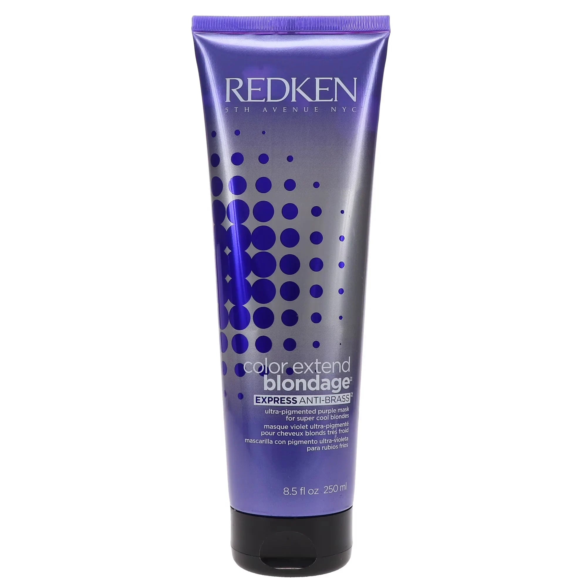 Redken Color Extend Blondage Express Anti-Brass Purple Hair Mask is an ultra-pigmented toning treatment designed to neutralize unwanted brassiness and restore cool, bright blonde tones in just minutes. This luxurious purple mask helps correct yellow and brassy hues while deeply conditioning hair, leaving it softer, smoother, and refreshed. Perfect for blonde, highlighted, or silver hair, it helps maintain vibrant, salon-quality color while leaving strands with a pleasant, refreshing citrus scent.